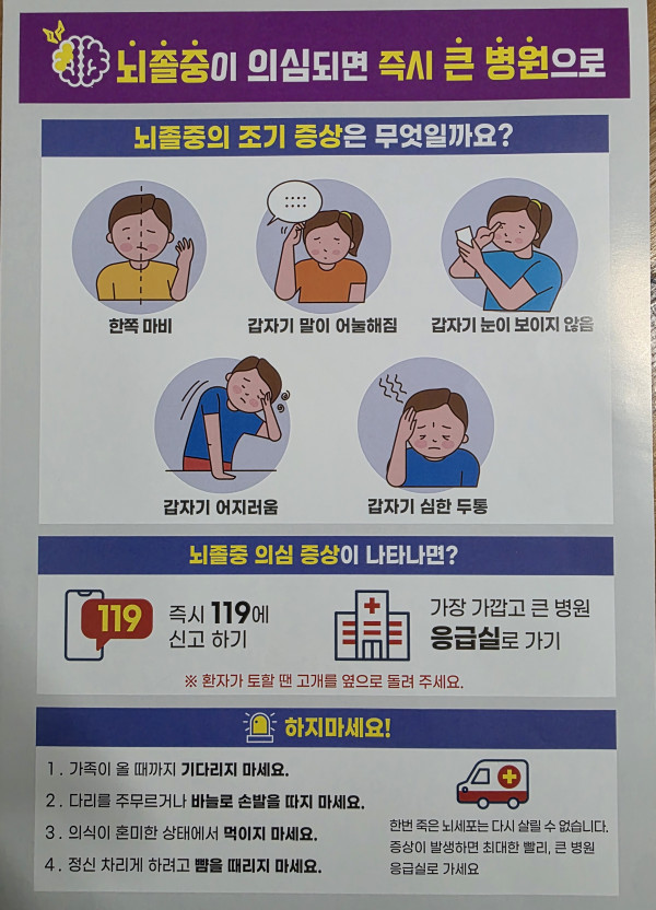 뇌졸증이 의심되면 즉시 큰 병원으로 페이지 정보 작성자최고관리자 댓글 0건 조회 108회 작성일 25-04-09 19:14 본문 뇌졸증의 조기 증상은? 목록 답변 이전글식사의 즐거움, 행복한 노년 25.04.09 다음글심근경색증이 의심되면 즉시 병원으로 25.04.09 댓글목록 댓글목록 등록된 댓글이 없습니다.