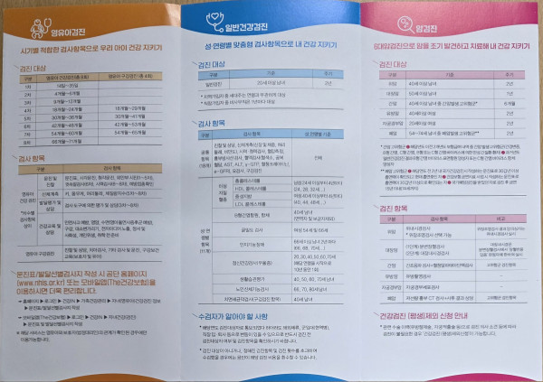 국가건강검진 페이지 정보 작성자최고관리자 댓글 0건 조회 37회 작성일 25-09-12 18:35 본문 태어날 때부터 평생! 국민 모두 건강하도록!영유아검진 + 일반건강검진 + 암검진 목록 답변 이전글치매예방수칙 3.3.3 25.09.12 다음글집으로 찾아가는 마을 의원 25.04.09 댓글목록 댓글목록 등록된 댓글이 없습니다.